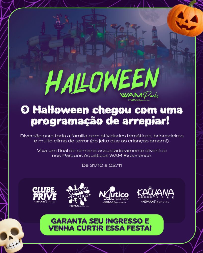 *Os horários e dias de funcionamento dos parques podem ser alterados durante o período de férias e feriados. Por favor, entre em contato com o Atendimento WAM Parks (64) 3454-8400 para mais informações.